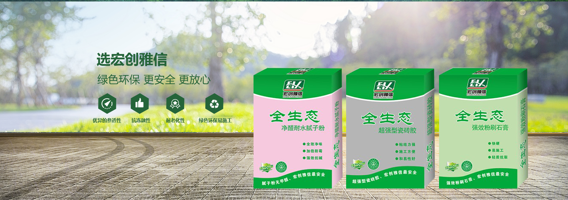 宏創(chuàng)雅信裝飾材料北京有限公司(威海分公司)是一家生產(chǎn),研發(fā),運輸,施工綜合性股份制企業(yè),主要產(chǎn)品:快粘粉、嵌縫石膏、內(nèi)外墻耐水膩子粉、內(nèi)墻超細膩子粉、高強石膏、粉刷石膏、瓷磚粘接劑、填縫劑、內(nèi)外墻防水涂料、108膠、聚合物粘接砂漿、聚合物抗裂抹面砂漿、灰鈣、重質(zhì)碳酸鈣、砌筑砂漿、膠粉聚苯顆粒、浮雕骨料、?;⒅楸厣皾{、FTC相變節(jié)能保溫砂漿、SF增水保溫砂漿、等產(chǎn)品。